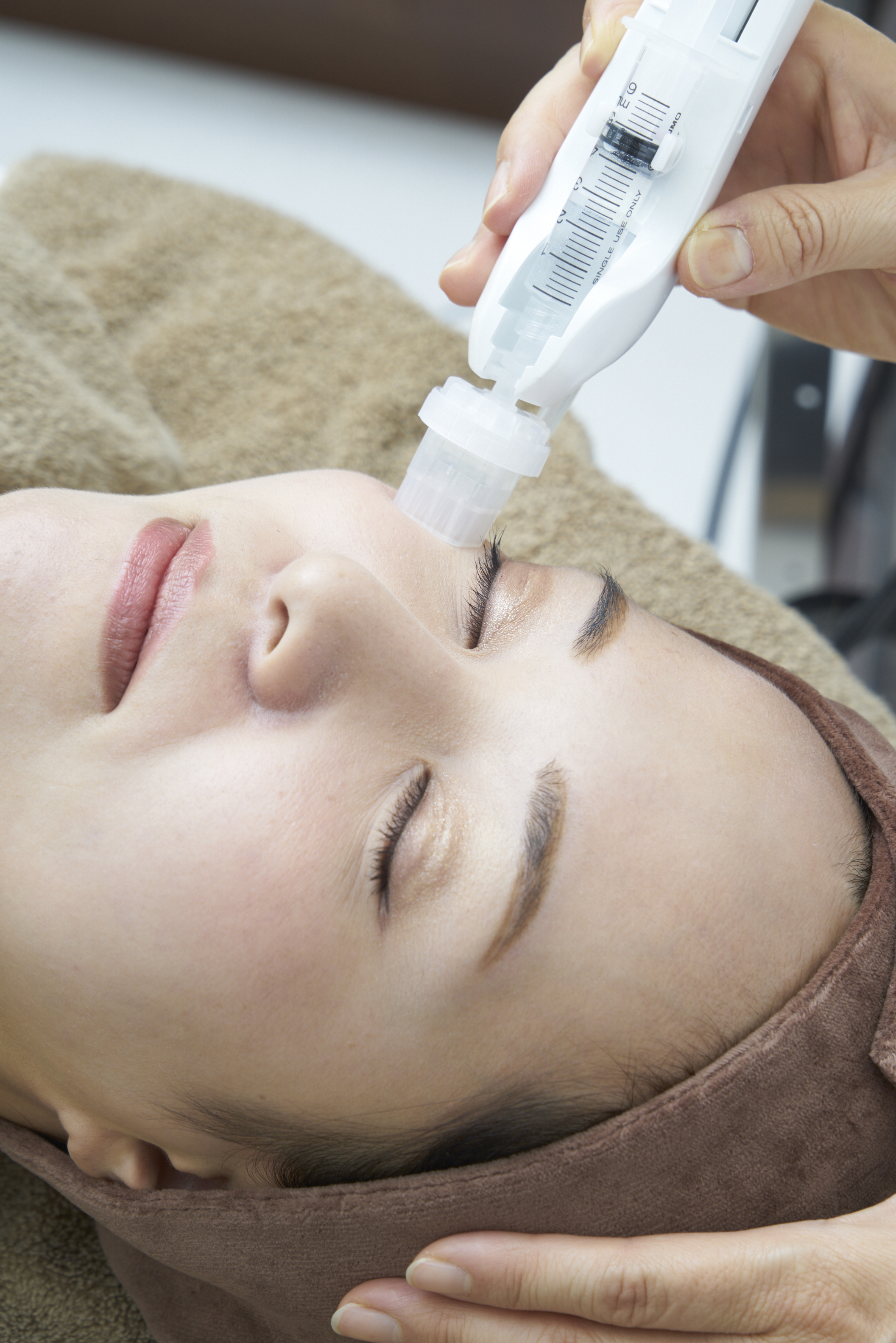A 「水光注射」は5年ほど前からある施術です。当院の水光注射「ダーマシャイン・バランス」は、手打ちではなく専用の美肌マシン。1ショット9針なので、スピーディに均一に施術可能です。