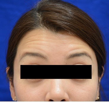おでこの下の方のシワ治療をする場合は、眉毛の下垂がおきないように皮内に浅めに注入するようにします。より自然な仕上がりを望まれる場合は全体的に浅めに注入することで、極端にシワが止まり過ぎないように調節します。加齢で瞼が重く垂れてきてしまい、目が開きにくいために額に力を入れてしまう方は、先に眼瞼下垂の治療をおすすめする場合があります。