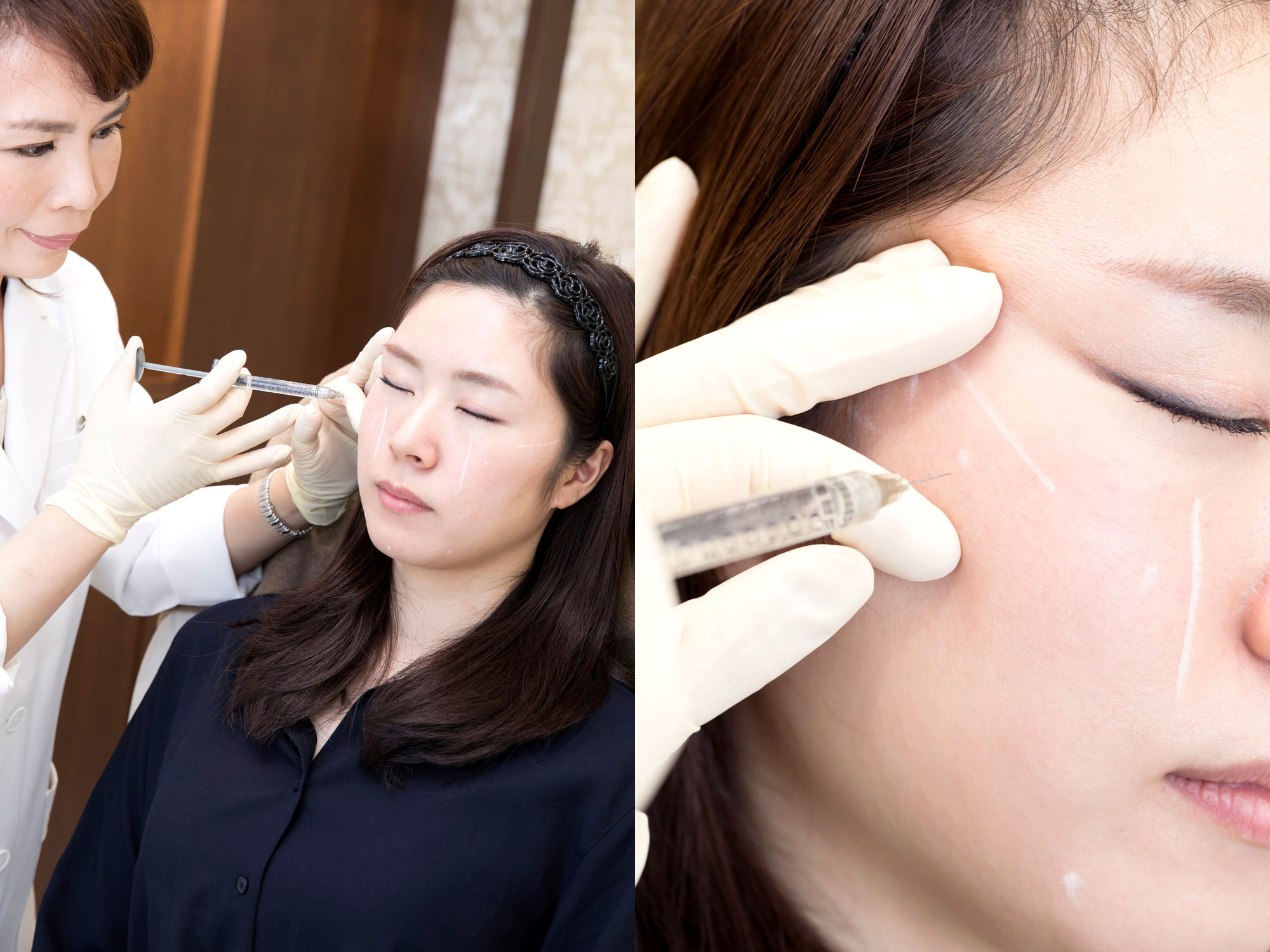 A.注入自体は20分前後です。カウンセリングなども含めて1時間程度見ていただくといいでしょう。 注射は1本¥100,000で、『Vシェイプリフト』は何ヶ所かバランスを見て打つので1回¥300,000~600,000となります。(詳細は高須クリニック名古屋院参照)。